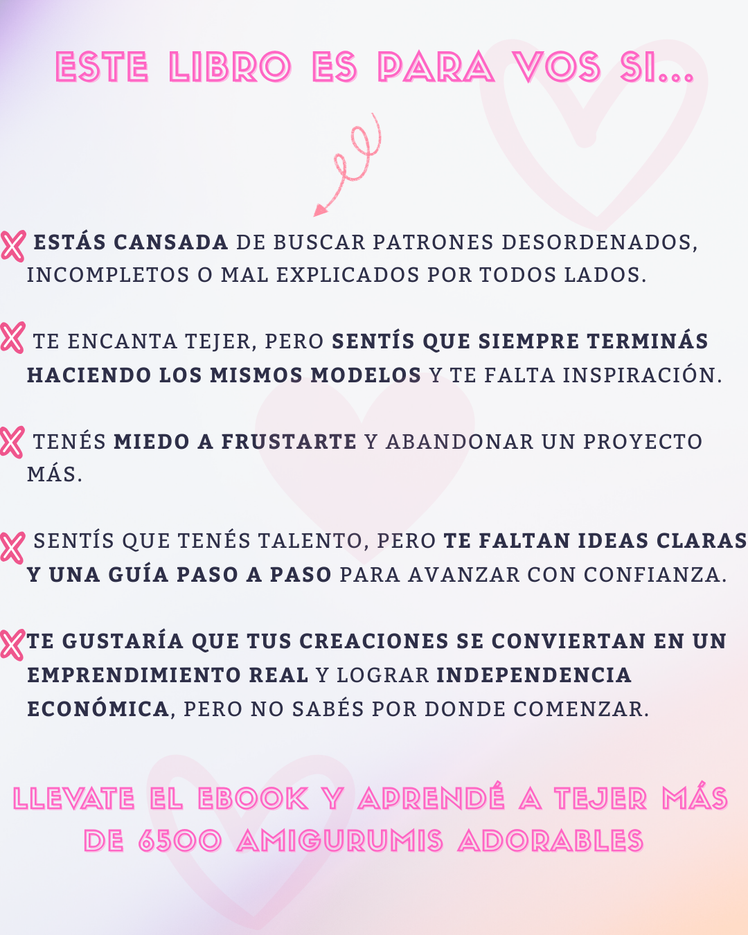 Por supuesto!. Este Ebook te ayudará a poner en práctica los patrones para poder transformar lo que tejes en ingresos reales, ahorrando tiempo, ideas y esfuerzo, creando productos vendibles sin tener que inventar desde cero.