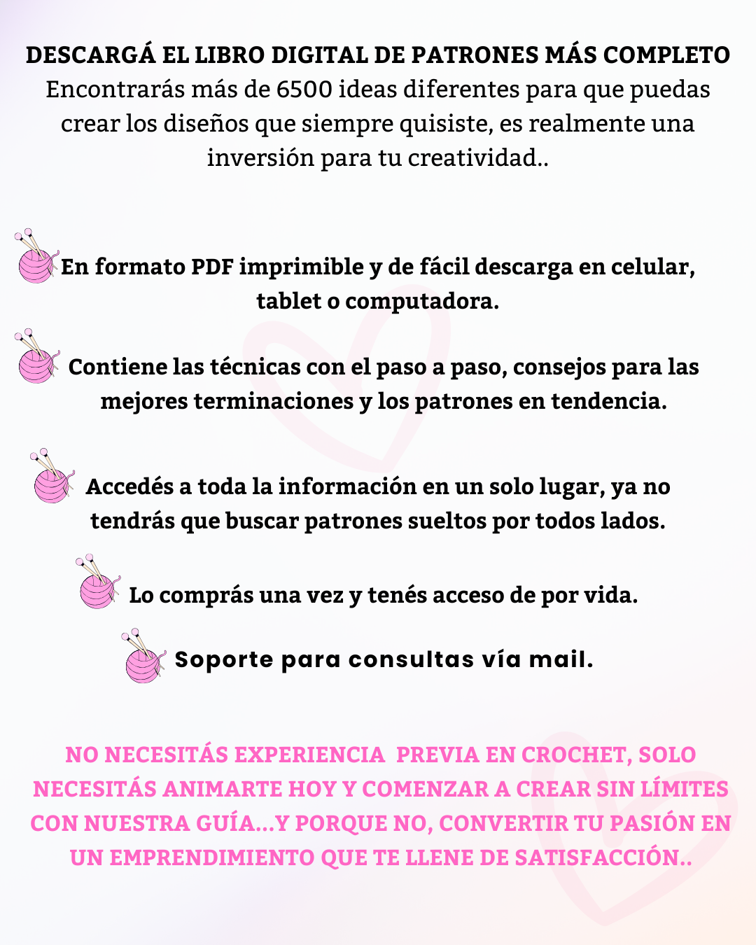 Para nada!, el ebook está pensado para todos los niveles, incluso si recién estas empezando. Vas a encontrar patrones simples y bien explicados, con instrucciones claras y paso a paso para que puedas avanzar a tu ritmo, sin frustrarte.
