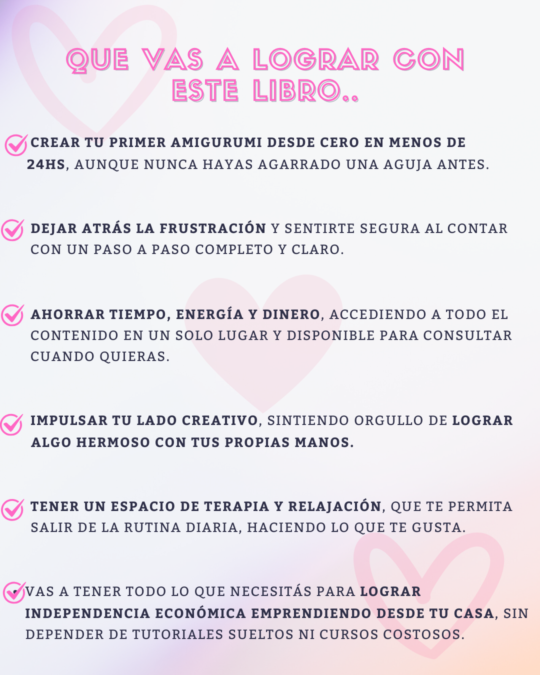 Solo necesitás tener hilo, aguja y muchas ganas de crear. No hace falta ningún software especial, ni materiales difíciles de conseguir. El ebook está en formato PDF, lo podés ver desde tu celular, tablet o computadora.